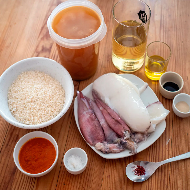 Ajouter la salmorreta, que nous avons préparée en faisant frire de l'ail émincé, des ñoras sans pépins, du persil et de la tomate râpée naturelle. Ayant déjà fait la sauce, il suffit de l'intégrer pendant 3 minutes avec les calamars et les seiches.