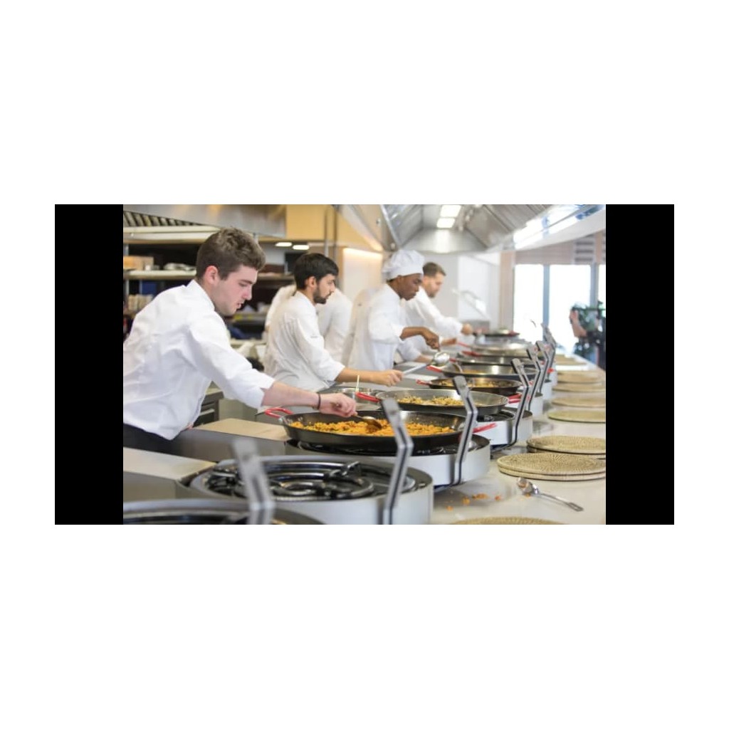 Même une personne inexpérimentée peut la cuisiner sans problème avec le brûleur à paella robot, simplement en suivant les étapes, le personnel de cuisine lui-même peut cuisiner au même niveau que le chef qui a conçu la recette, en plus de simplifier et d'uniformiser les étapes, le le personnel de La cuisine peut être plus efficace en cuisinant jusqu'à 6 robots paella simultanément ou en pouvant se concentrer sur d'autres tâches et repas tout en préparant la paella, ce qui se traduit par des économies considérables (jusqu'à 50%) en main-d'œuvre qualifiée, faisant de cet achat un excellent achat. investissement pour l'avenir, car vous augmenterez la rentabilité de votre entreprise, amortissant rapidement l'achat de ce brûleur à paella robot.
